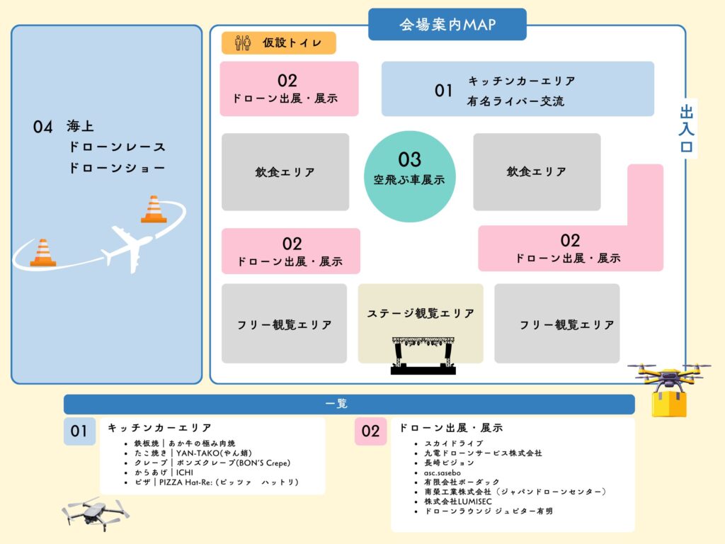 ※ドローン産業展示会、飲食ブースは開場から常時開