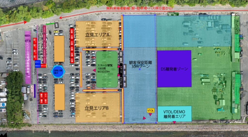 – ドローン飛行については安全上の理由から、飛行可能エリア・時間等を主催者が定めます。